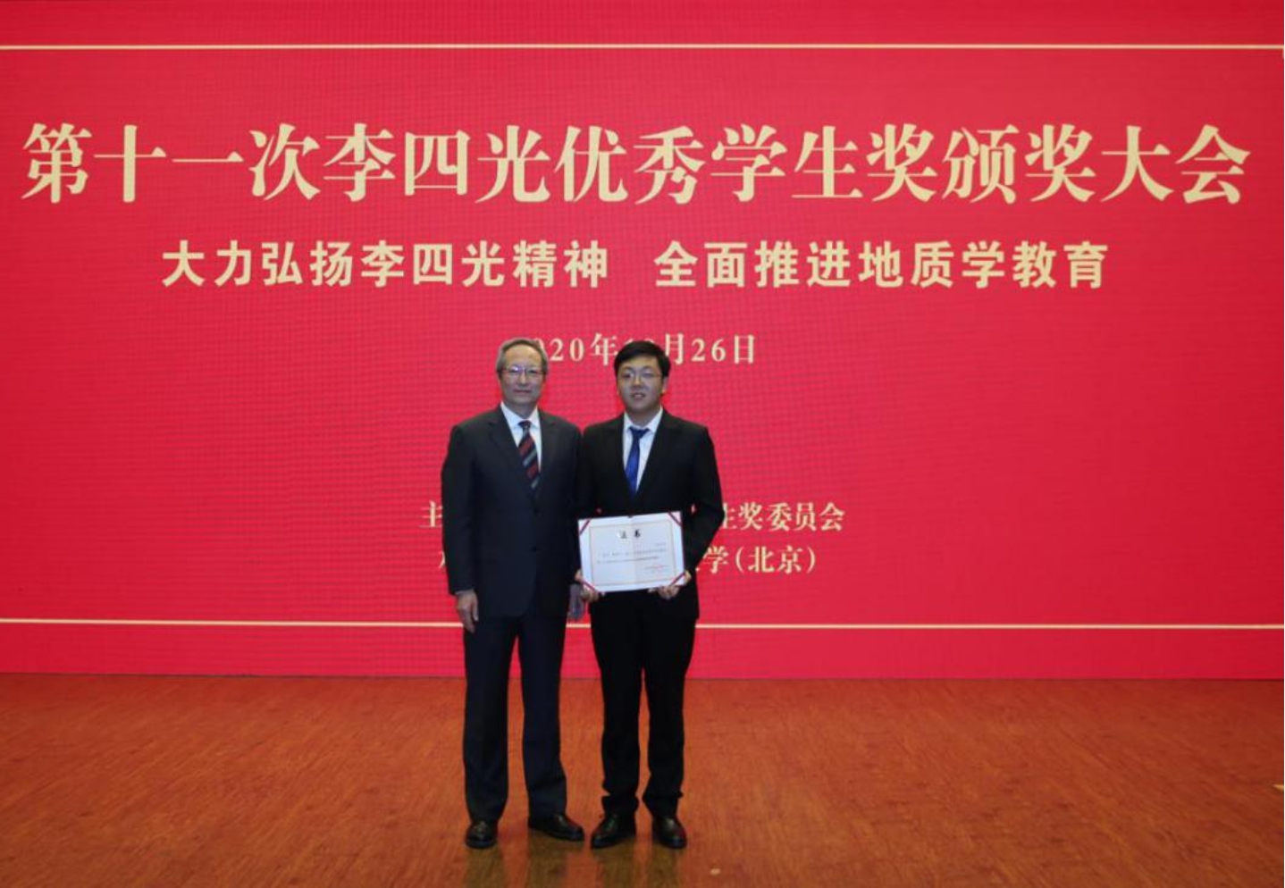 第十一次李四光优秀学生奖颁奖大会,2020年10月26日在中国地质大学(北京)举行。来自自然资源部、教育部、北京大学、中国科学院大学及商务部国际贸易经济合作研究院等单位、高校及研究院所的相关负责人、师生代表以及李四光先生家属代表等参加颁奖大会。