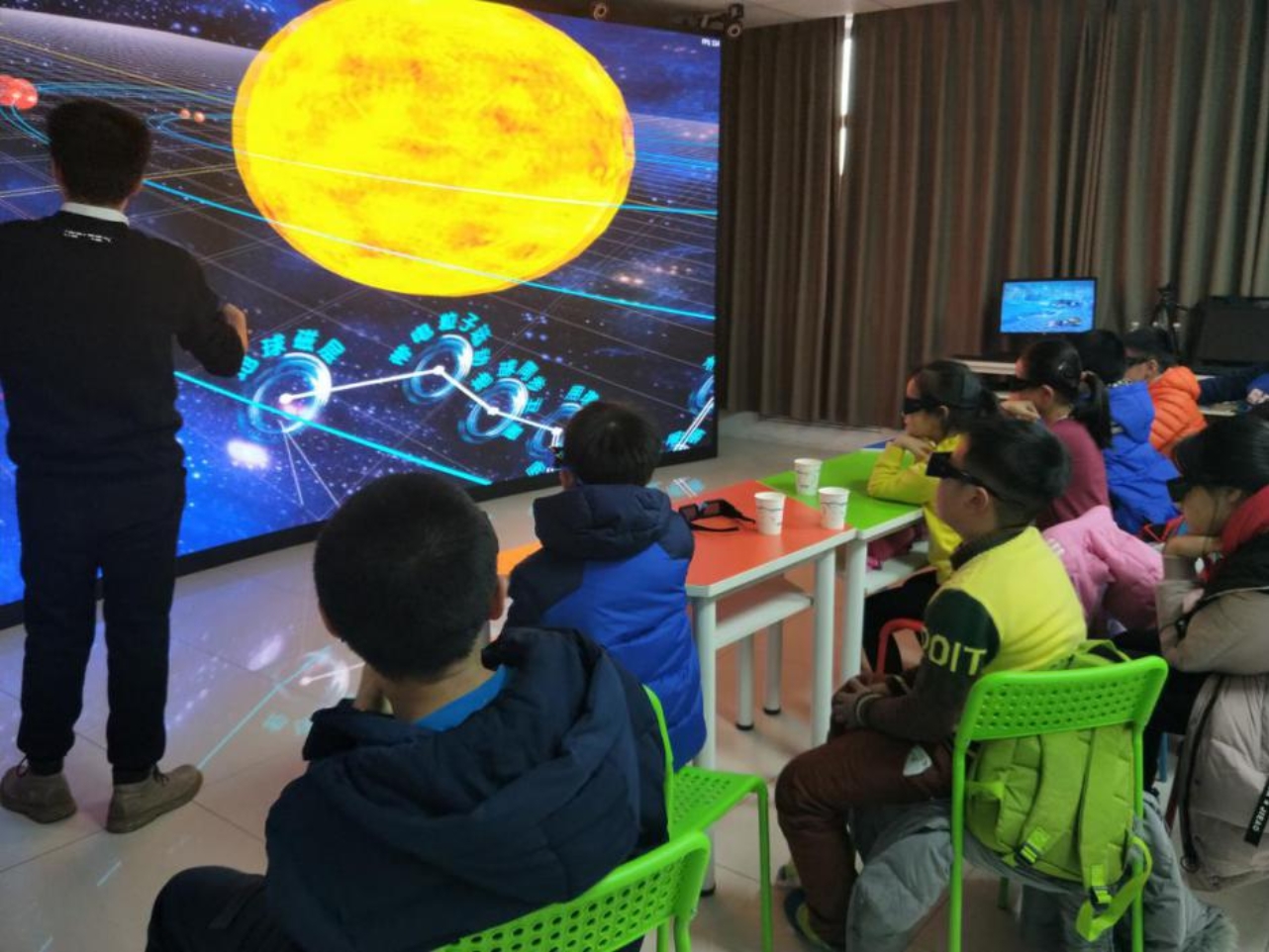 活动的最后一个环节是熊文涛老师带来的虚拟仿真课程,孩子们进入了VR的世界,身临其境感受地学奥妙。