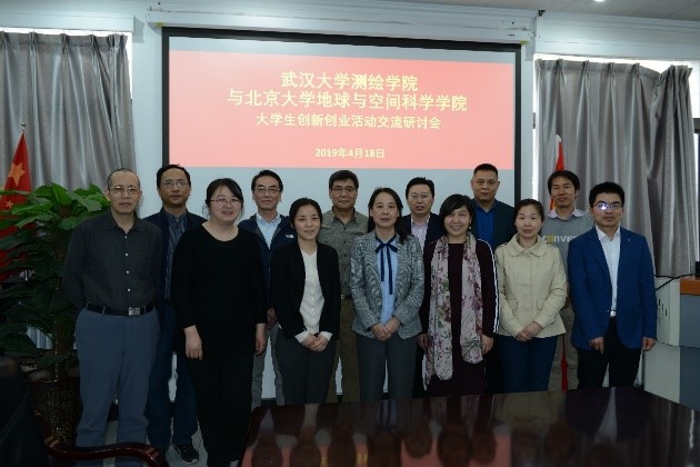 4月19日下午,武汉大学测绘学院党委书记孙萍、党委副书记王中全、副院长邹进贵、本科生院实践办主任丁家玲、大创中心主任章迪、大创中心副主任秦咏梅一行6人进行本科生人才培养及大学生创新创业的调研,主要内容是与地球与空间科学学院进行座谈,到遥感与地理信息系统研究所进行学科研讨和参观北京大学全球大学生创新创业中心。