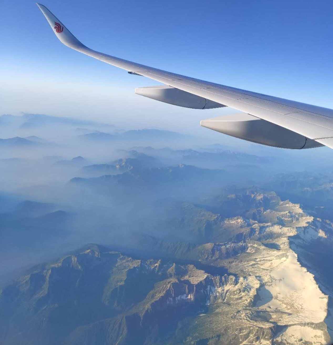 (图1飞机窗舱初遇阿尔卑斯山脉)