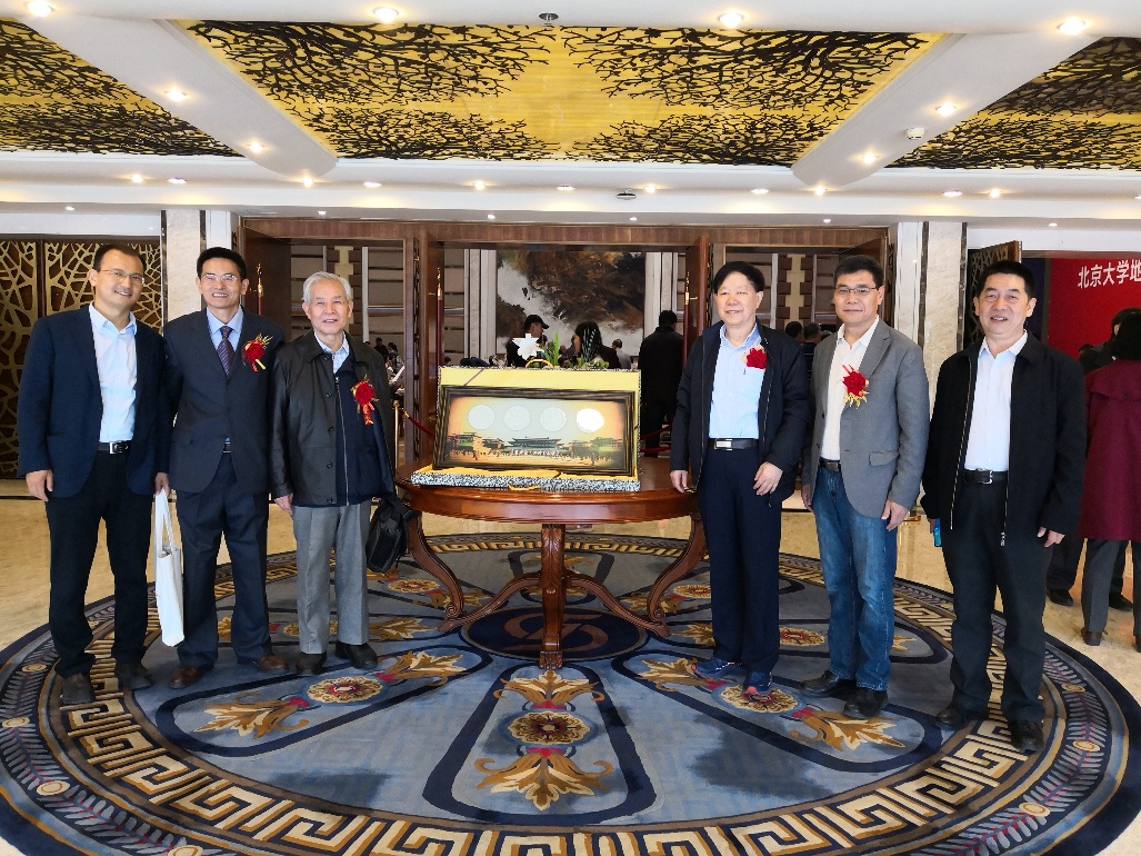 大会开始前,北京大学校长郝平与参加庆典的嘉宾和系友代表合影留念。
