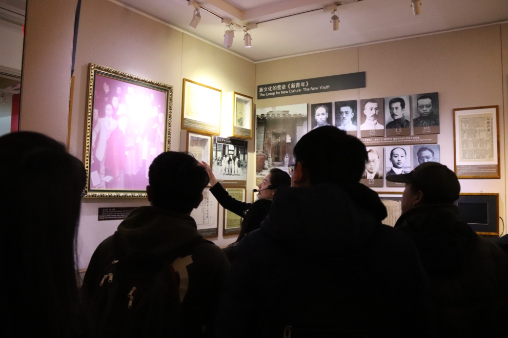 之后,大家又参观了旁边的“点燃新文化的火炬——新文化运动陈列展”和“不忘初心——马克思主义在中国早期传播陈列”两个系列展。一张张图片、一件件展品记录着北大的民主与科学精神内涵,讲述着北大人与爱国进步思想解放运动的点滴。