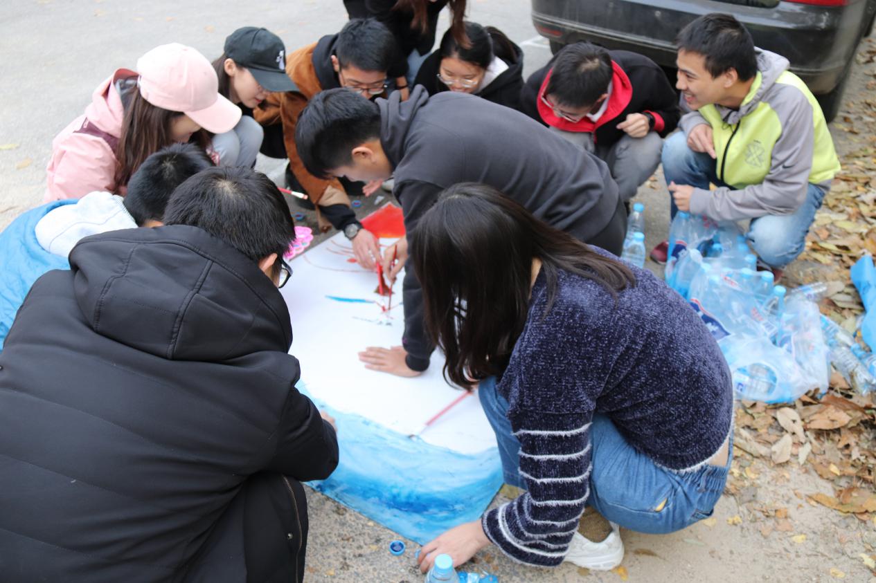 下午的活动中,同学们来到农家乐前的空场,在教练的组织下进行了找数字、猜数字的游戏,各队团结协作,依靠对内协调交流力争在一次次脑力和体力的角逐中为队争光。在最后的环节,各队用画笔以丰富的想象力畅想描绘了美好未来,各队在未经互相交流的情况下,所有画卷都展现的地空人的追求——仰望星空,脚踏实地。