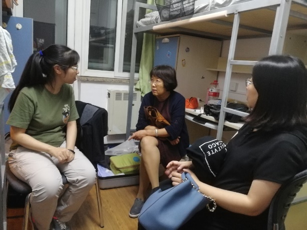 晚上7时许,地空学院副院长张进江、宁杰远,院学工办于超美、刘金秋和班主任赵红颖、施伟红等老师成三组,分别在燕园、万柳宿舍探望研究生,关心学生的生活住宿情况,给学生带去温暖。