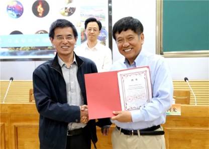 5月23日上午,北京大学地球与空间科学学院江山地球科学科普基地启动仪式在浙江省江山市江山中学隆重举行。出席本次活动的嘉宾有世界著名地球科学家、中国科 学院外籍院士、美国国家科学院院士毛河光及其夫人刘警石;北京大学地球与空间科学学院院长张立飞、院长助理刘金秋;江山市市长舒畅等地方领导。江山中学 300余名师生参加了活动。活动由江山市副市长何正芳主持。