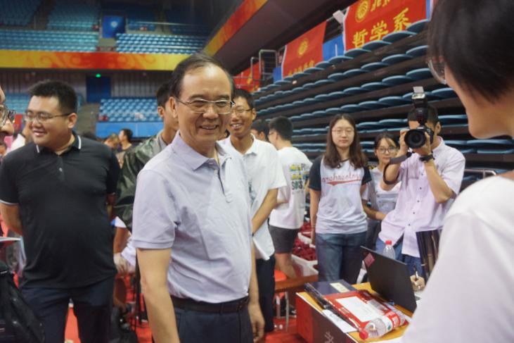 不久,北京大学林建华校长到达迎新现场,询问各院系迎新情况,对新同学们表示热烈的欢迎,对我院的迎新工作队伍表示充分的肯定。