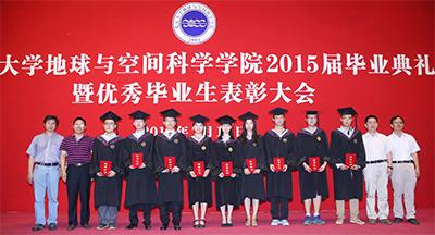 典礼在雄壮的国歌声中拉开序幕。院党委书记傅绥燕宣读了2015届北京市、北京大学优秀毕业生名单及赴基层和西部地区就业的毕业生名单,今年地空学院共有10名同学荣获“北京市普通高等学校优秀毕业生”荣誉称号,22名同学荣获“北京大学优秀毕业生”荣誉称号,8位同学赴基层和西部地区就业,傅绥燕书记在致辞中对各位获奖同学表示热烈祝贺,希望他们再接再厉,同时肯定了赴西部和基层就业的同学的选择,将自己的命运与民族最伟大的事业相连,希望他们可以让自己的梦想在实践中闪光。随后,在热烈的掌声中,涂传诒院士和张立飞院长为2015届北京市优秀毕业生颁奖;刘建波、李培军、张飞舟副院长、宗秋刚所长为2015届北京大学优秀毕业生颁奖;傅绥燕书记、于超美和赖勇副书记为赴基层和西部地区就业的毕业生
