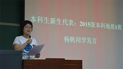 2015年9月10日下午,地球与空间科学学院2015年新生开学典礼于理教107室举行。中国科学院院士叶大年,院长张立飞,院党委书记傅绥燕,院党委副书记于超美,各研究所所长,学院行政系统各老师以及新生班主任代表出席了典礼。典礼由2014级本科生黄如许主持。