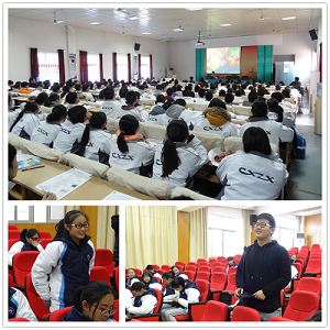 随后,讲师团针对不同年级学生分别授课。2014级地球物理专业硕士生刘嘉辉以“未来在你手中”为题,启发同学们在不断科学地怀疑和试错中找到属于自己的理想并为之踏实奋斗;2015级分子医学专业博士生高露在报告“北京大学屠呦呦和青蒿素”中以互动学习和自主探索的形式为同学们展现了诺贝尔奖获得者屠呦呦校友在科研道路上上下求索的执着精神。安吉高级中学高一、高二年级6个班级共约300名学生听课,并对讲师团两个小时的精彩授课报以热烈掌声。