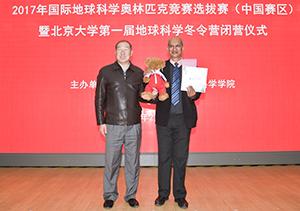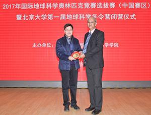 2月17日,2017年国际地球科学奥林匹克竞赛选拔赛(中国赛区)暨北京大学第一届地球科学冬令营闭营仪式在北京一零一中学报告厅举行。国际地球科学教育组织主席、国际地球科学奥林匹克竞赛考试委员会主席R.Shankar教授,北京市一零一中学副校长许星,北京大学地球与空间科学学院副院长张进江教授、冬令营教学负责人吴泰然教授、青年千人沈冰,国际地球科学奥赛(中国赛区)联系人北京市一零一中学体美办主任夏焕春、北京大学地球与空间科学学院院长助理王新茹出席了此次仪式。闭营仪式由北京大学地球与空间科学学院副院长张进江教授主持。