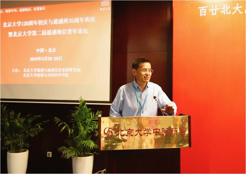 2018 年5月28–29日,由北京大学地球与空间科学学院遥感与地理信息系统研究所(以下简称北大遥感所)主办的北京大学第二届遥感地信青年论坛在北京大学中关 新园科学报告厅成功举行。值此北京大学建校120周年与北大遥感所建所35周年之际,来自美国、荷兰、比利时、新加坡、瑞典、日本等多个国家的50多名海 内外优秀青年学者和校友共聚燕园未名湖畔,探讨遥感、地理信息及其前沿交叉领域的未来发展。地球与空间科学学院院长张立飞教授、党委书记李培军教授、遥感 所所长洪阳讲席教授、副所长刘瑜教授、杜世宏副教授等出席了本次青年论坛开幕式。开幕式由北大遥感所杜世宏副所长主持。本次论坛由“北京大学遥感地信名家 讲坛(第十三讲)”、“遥感地信青年论坛(I–V)”、“开放式讨论”、“参观与交流”等环节组成。