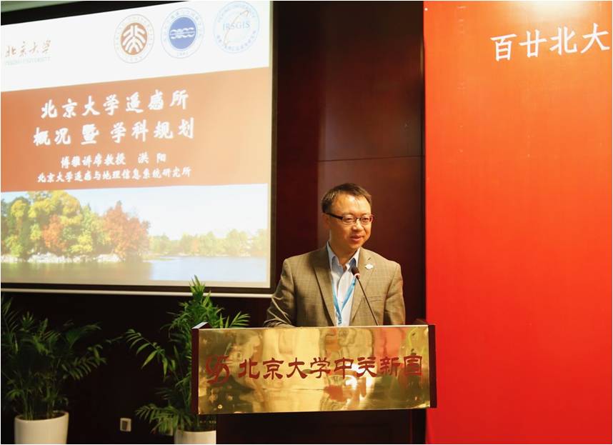国 家千人计划专家、北京大学讲席教授洪阳所长代表遥感所致欢迎辞。洪阳教授回顾了遥感所的发展历史,详细介绍了遥感所主要研究方向与代表性科研成果,并展望 了北大遥感所面向“定量遥感、时空智能”特色目标的中长期的发展规划。洪阳教授还重点介绍了遥感所双一流学科建设的目标,并诚邀国内外优秀青年学者加入北 大遥感地信青年科学家团队,共同推动我国遥感地信事业的发展。