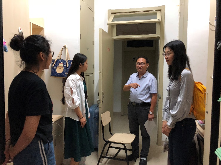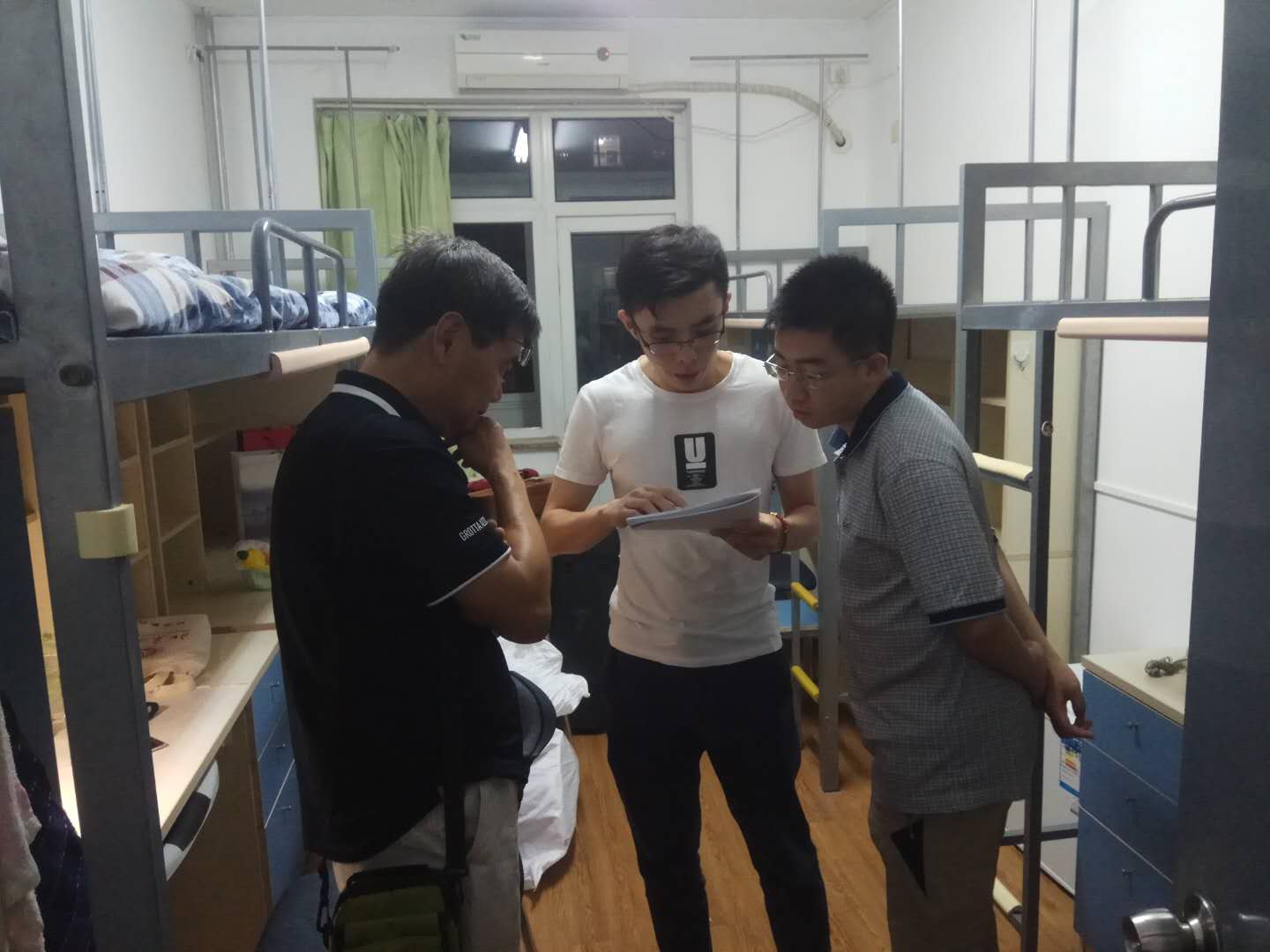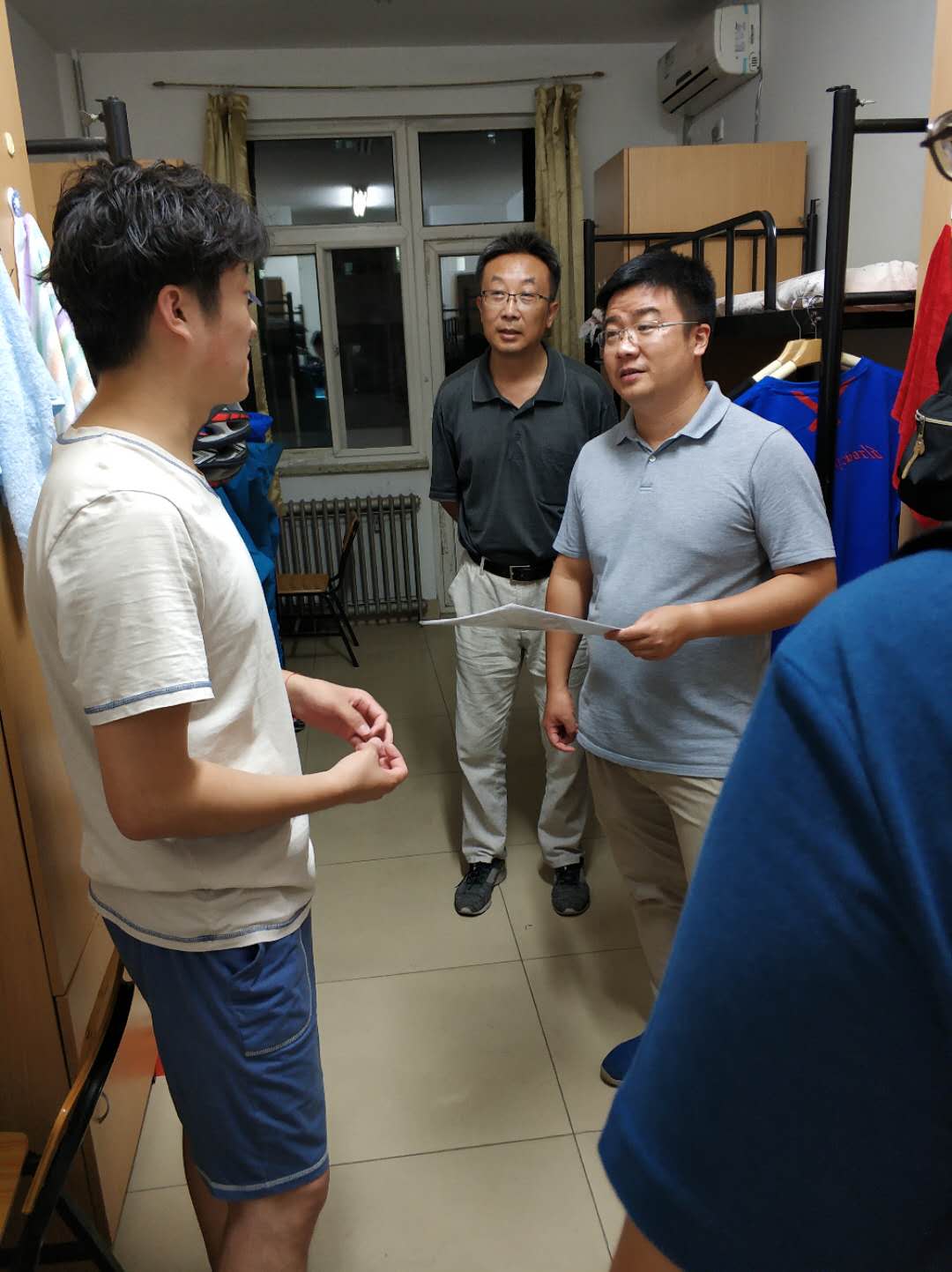晚上7时许,地空学院副院长张进江、宁杰远,院学工办于超美、刘金秋和班主任赵红颖、施伟红等老师成三组,分别在燕园、万柳宿舍探望研究生,关心学生的生活住宿情况,给学生带去温暖。