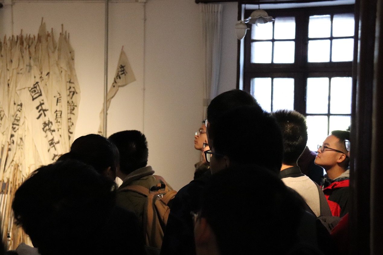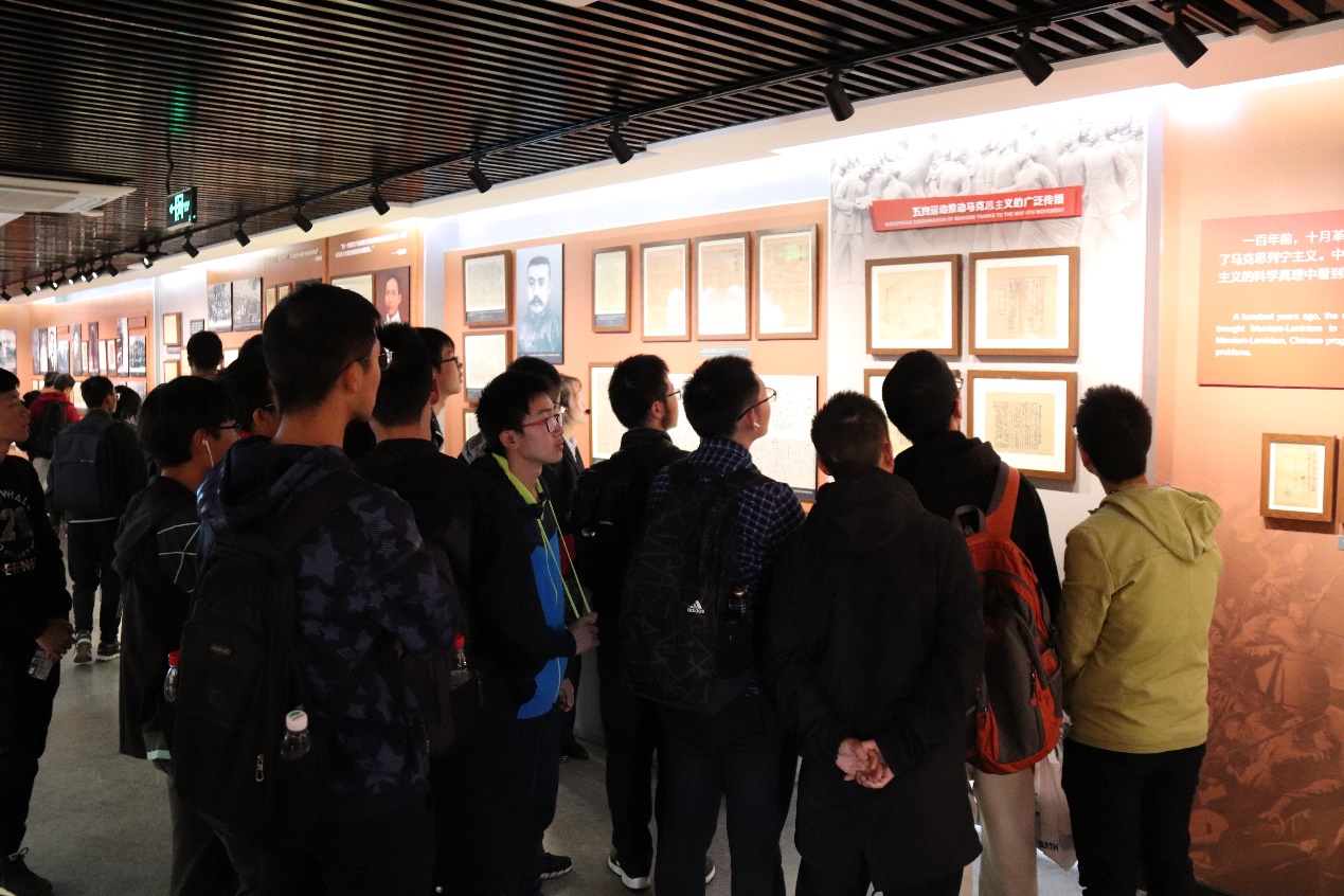 在讲解员的带领下同学们走进红楼,仿佛置身百年前的北大,那个五四运动的先驱者正在工作、求索和读书的圣地。同学们分为三批轮流参观“新时代的新声——新文化运动陈列”、“不忘初心——马克思主义在中国的早期传播”两个主题展览以及红楼一层。纪念馆讲解员对每一处复原的旧址都做了细致的生动的介绍。