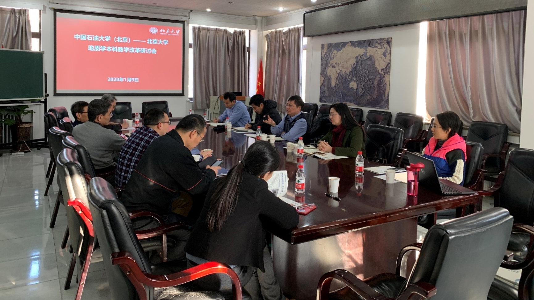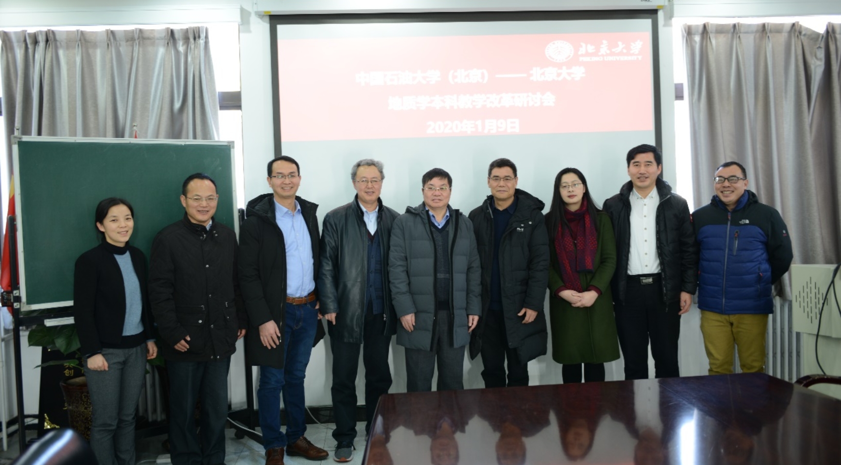 2020年1月9日上午,中国石油大学(北京)地球科学学院院长曾溅辉,副院长陈冬霞、岳大力,地质学系系主任鲜本忠一行四人来到北京大学地球与空间科学学院开展地质学本科教学改革研讨会,双方就两校地质学专业本科生教学现状及改革方向展开讨论。