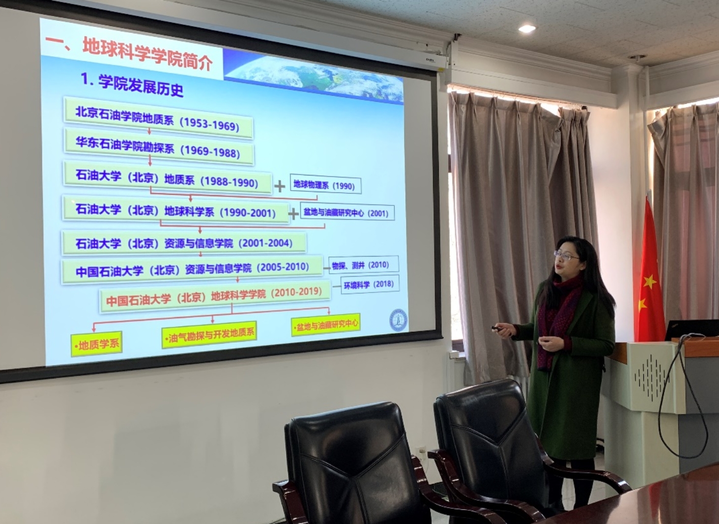 中国石油大学(北京)地球科学学院副院长陈冬霞介绍学院情况