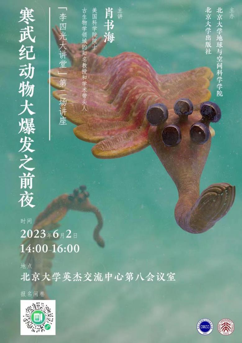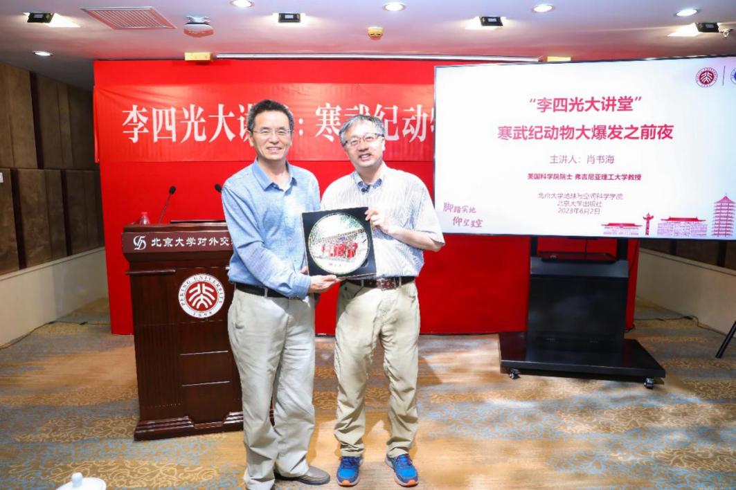 6月2日下午,“李四光大讲堂”第二讲在北京大学英杰交流中心举行。美国国家科学院院士、美国弗吉尼亚理工大学教授、北京大学地质学系1984级系友肖书海应邀以“寒武纪动物大爆发之前夜”为主题作学术讲座。会议由北京大学地球与空间科学学院、北京大学出版社联合举办。