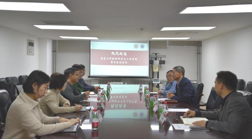 张立飞首先对南京大学地球科学与工程学院一行的到来表示热烈欢迎,并简要介绍了地空学院的发展历程、建设情况及在教学、科研、人才引进等方面的最新成果。他表示,希望双方能够借此机会深入探讨、广泛交流,共同为地球科学领域的发展贡献力量。