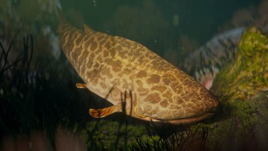图3 根据新发现制作的初始全颌鱼生活复原图(拟石科技制作)