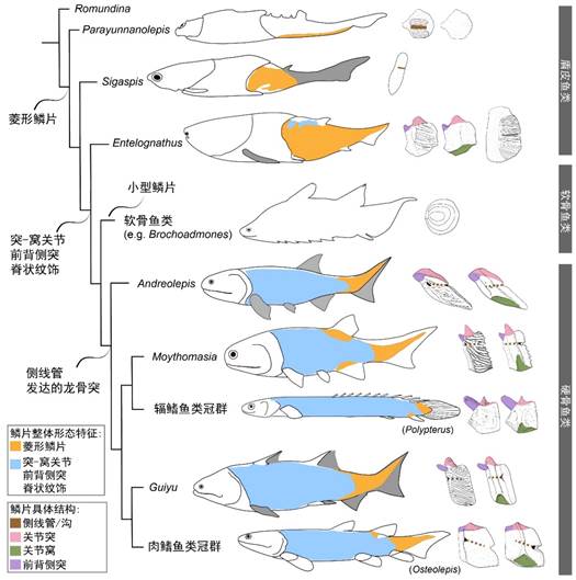 图2 有颌脊椎动物鳞片特征演化。(崔心东供图)