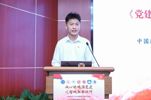 中国矿业大学(北京)地球科学与测绘工程学院博24-1党支部张琦以《党建引擎驱动地学创新:在能源与生态的前沿书写中国方案》为题,分享了支部成员用地质智慧守护绿水青山的青年答卷。中国石油大学(北京)地球物理学院勘探尖兵党支部苟祖康以《顶天立地,格物致知:书写一融双高地物新篇章》为题讲述了党支部联合云南省楚雄彝族自治州河硐村开展产学研转化的实践案例。中国科学院大学地球与行星科学学院建筑中心党支部杜晓晗以《党建领航科研路,共筑人居新景图》为题介绍了党支部服务中共第一个农村支部河北省衡水市安平县台城村特别支部乡村规划与设计提升的示范工作。