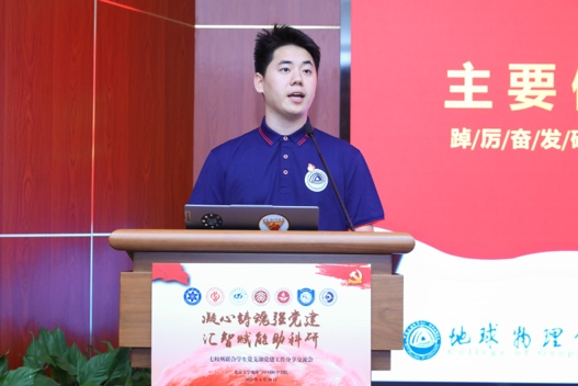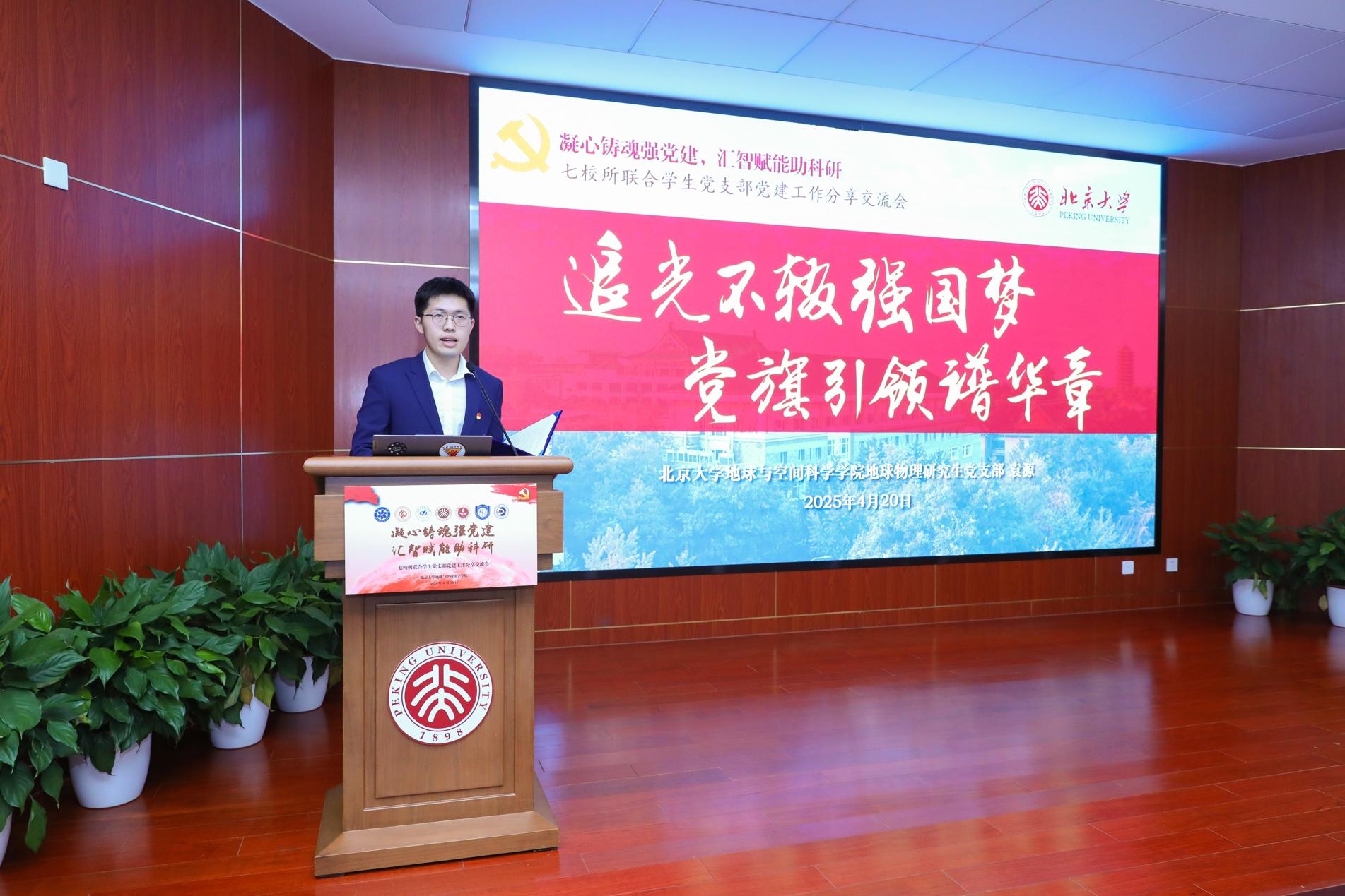 北京大学地球与空间科学学院地球物理研究生党支部袁源以《追光不辍强国梦,党旗引领谱华章》为主题,分享了党支部以李四光精神为引领,聚焦“课程思政、科普宣讲、科研攻关、校地合作”开展的一系列党建工作。