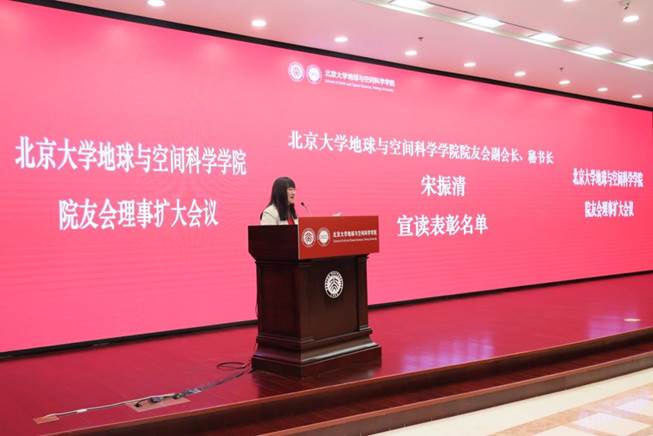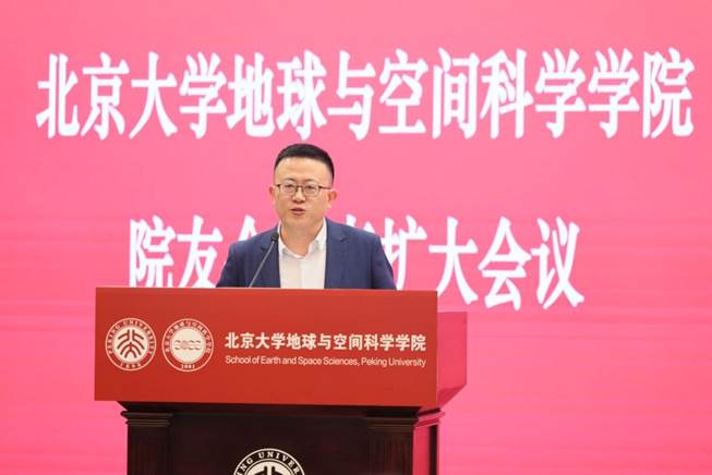 5月10日上午,北京大学地球与空间科学学院(简称“地空学院”)院友会2025年理事扩大会议在中关新园群英厅举行。北京大学校友会副秘书长、校友工作办公室副主任李存峰,地空学院院友会会长修济刚,地空学院院长张立飞,院党委书记李培军,院友会副会长宋振清、夏曙东、崔玉龙、傅绥燕,地空学院副院长宁杰远、刘瑜、何建森、沈冰,院党委副书记江大勇、陈云超,院友会常务理事、理事、秘书处人员,学院在职教师代表等线下出席会议,120余名院友会常务理事、理事、院友、在职教师通过线上方式参会。会议由宋振清主持。