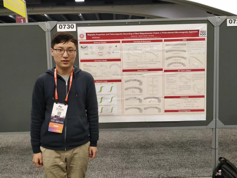 科研上,他的主要研究方向为微磁模拟和磁性矿物图像处理,夯实基础工作、创新研究方法,以第一作者身份在Nature Index期刊GRL和JGR-Solid Earth发表学术论文2篇,还以第三作者在EPSL和GRL发表学术论文2篇。