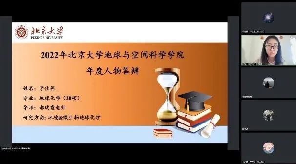 2023年1月9日下午,北京大学地球与空间科学学院2022年学生年度人物答辩评审会通过线上的形式举行。来自不同年级、不同专业共11名候选人同学参与本次答辩。学院党委副书记陈云超、班主任老师代表、学工办老师共16人出席会议并担任答辩评委。