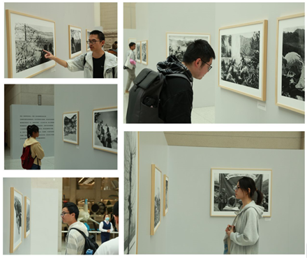 作品展展出了张崇岫在抗美援朝战场拍摄的120余幅战地摄影作品和部分实物展品,其中既有气势磅礴的宏大叙事,也有细致入微的战争情节。真实的影像尤其具有感染力,一件件历史遗物、一张张影像记录、一座座主题雕塑,带领同学们重新回到了那个战火纷飞、艰苦奋斗的年代,给同志们留下了深刻的印象。