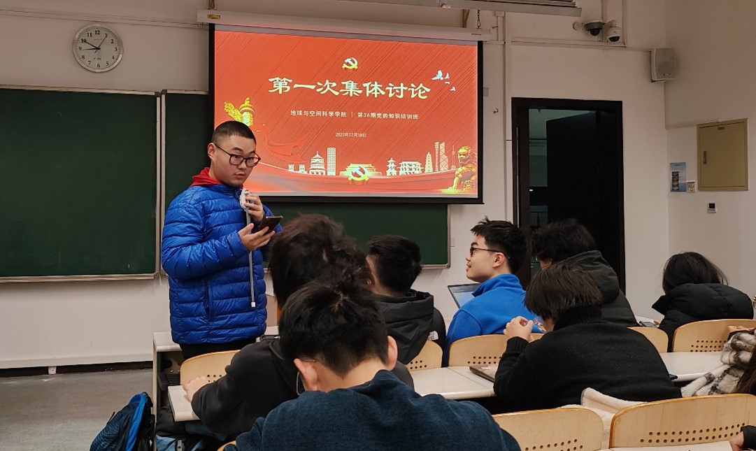 2023年12月18日,地球与空间科学学院第36期党的知识培训班第一次集体讨论在二教507召开,此次集体讨论围绕“端正入党动机,永葆热血初心”主题分小组展开。