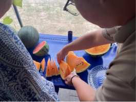 北臧村镇人民热情好客,周春秀一边讲解,一边用自家产的西瓜招待起大家。大家现场品尝了冰淇淋、中农汇、L600等品种的西瓜。色彩缤纷、口味鲜美的西瓜让在场的所有人再一次感受到了新中国乡村发展带来的深刻变化,中国农业发展的巨大潜力。周春秀谈到,每一个品种的西瓜都有自己独特的口味,皮薄味美的西瓜源于的生产过程的精心控制。从瓜心到瓜皮,甜度的差别不超过一,这样才保证了大家的每一口品尝都是香甜的。