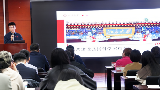 北京大学地球与空间科学学院地球物理研究生党支部王韬智以"传承李四光精神,勇担科研报国使命"为主题分享了党支部弘扬李四光精神的科普实践,通过回顾李四光先生在北京大学地质学系的开创性工作及科研成就,激励青年党团员投身科研报国事业。