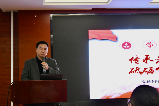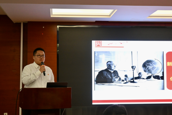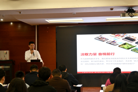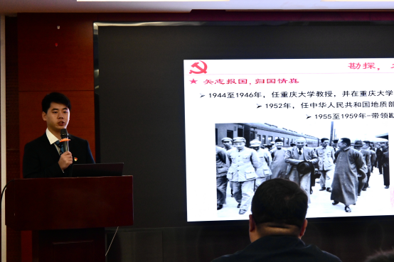 中国石油大学(北京)地球物理学院“探测先锋”党支部苟祖康以“从石油勘探出发,追寻李四光精神”为题,分享了李四光先生主导国家战略性石油勘探的故事,李四光先生聚焦国家所急开展科研攻关,其强烈的民族责任感始终激励着当代青年。