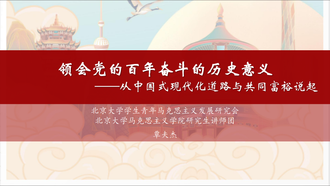 学习包括三个大部分:首先是对本次全会概况和《决议》基本框架的介绍;接着是关于中国式现代化道路与共同富裕的理解;最后是习近平总书记关于促进共同富裕的原则的论述。覃学长向我们介绍了从全会召开到结束一些重要文件、事件发生的时间线,帮助我们更好地理解全会过程。