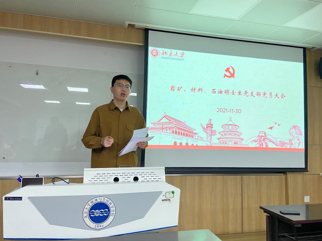 11月30日,地球与空间科学学院岩矿、材料、石油硕士生党支部在逸夫二楼3331教室开展“过好政治生日,牢记初心使命”主题党日活动。活动由党支部书记王利杰主持。