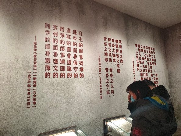 北大红楼内目前展览着“光辉伟业 红色序章——北大红楼与中国共产党早期北京革命活动”主题展,共包含6个部分,同学们沿着时间线,依次品读历史,从“经历近代各种力量救亡图存探索的失败,工人阶级开始登上历史舞台”到“唤起民族觉醒,构筑新文化运动的中心”,从胖“高举爱国旗帜,形成五四运动的策源地”到“播撒革命火种,打造马克思主义在中国早期传播的主阵地”,从“酝酿和筹建中国共产党,铸就党的主要孕育地之一”到“不忘初心,牢记使命”,真正理解了为什么说“中国人民选择中国共产党是历史的必然”。